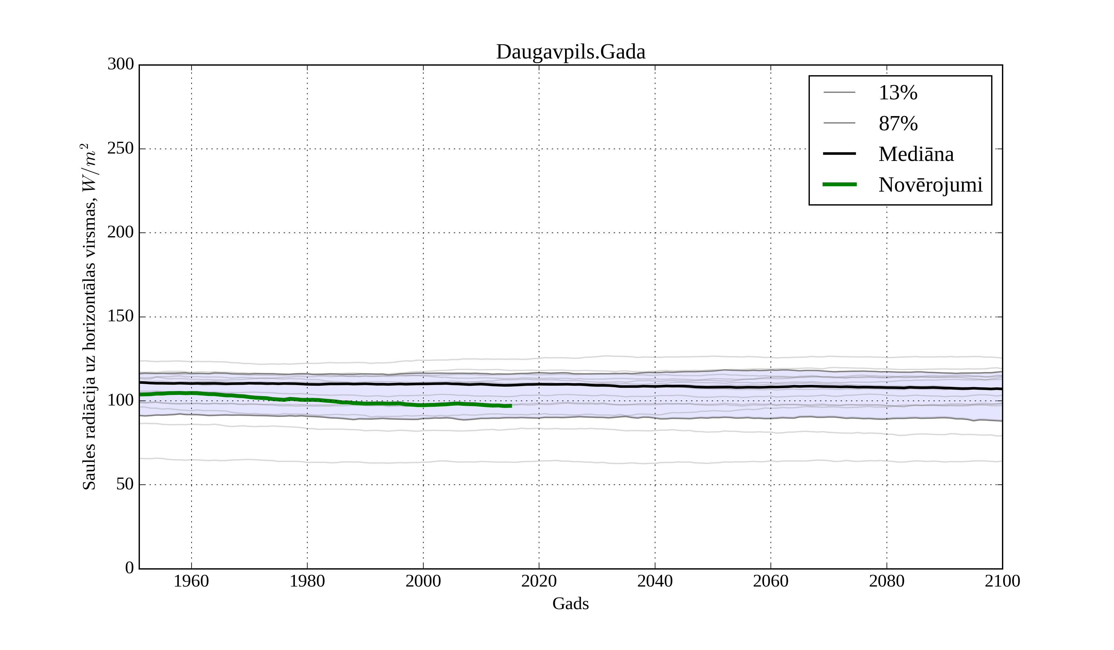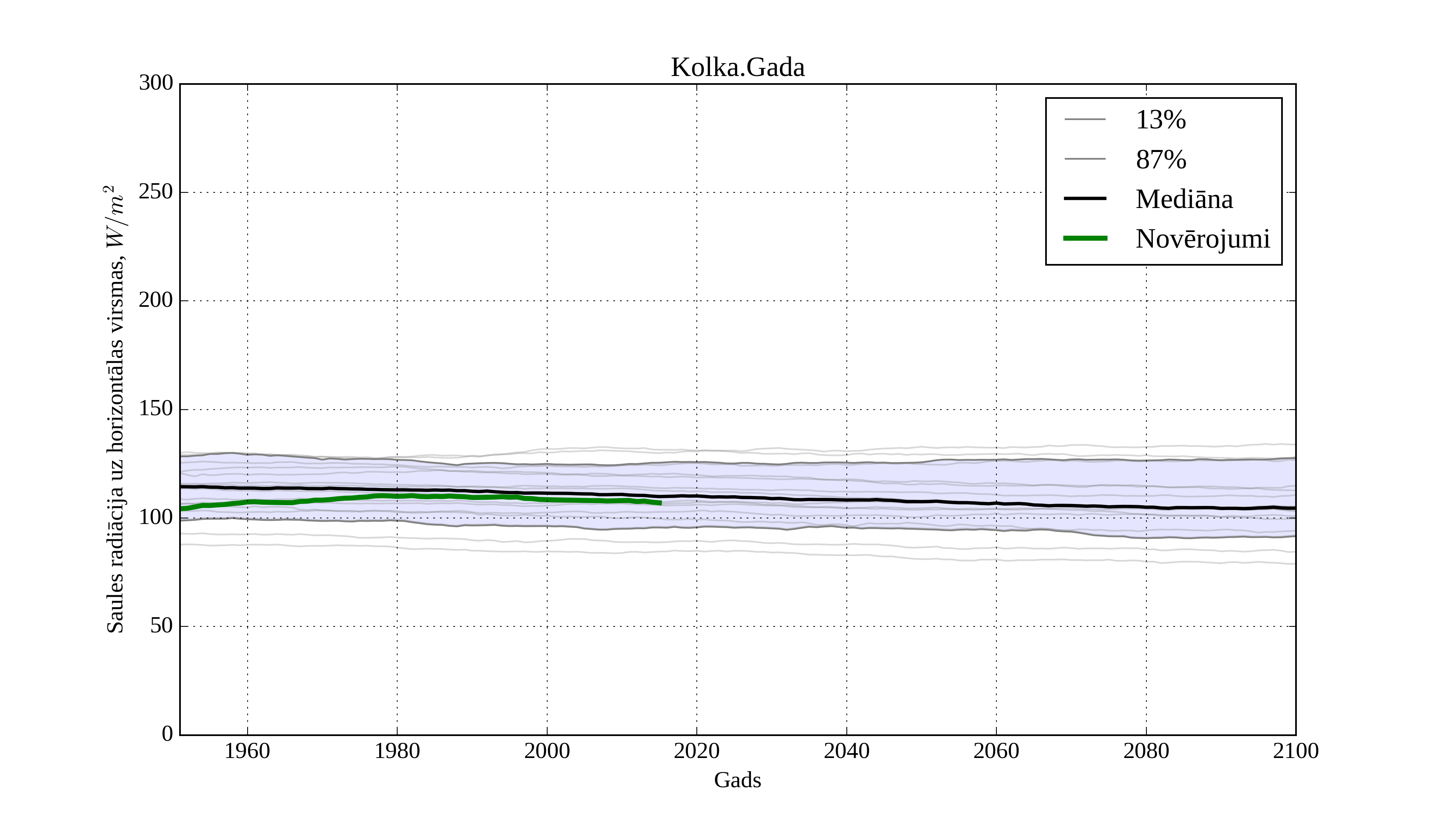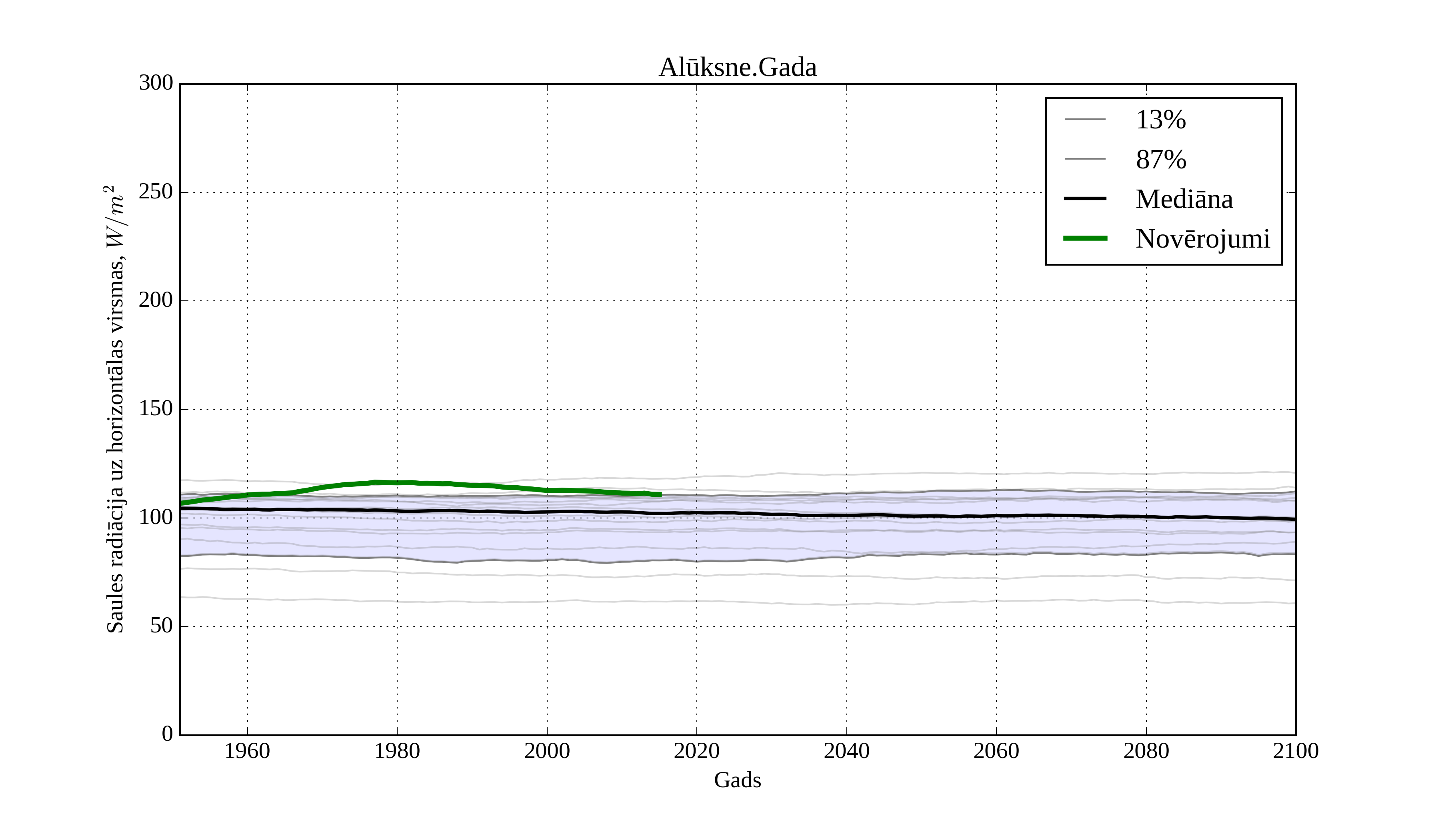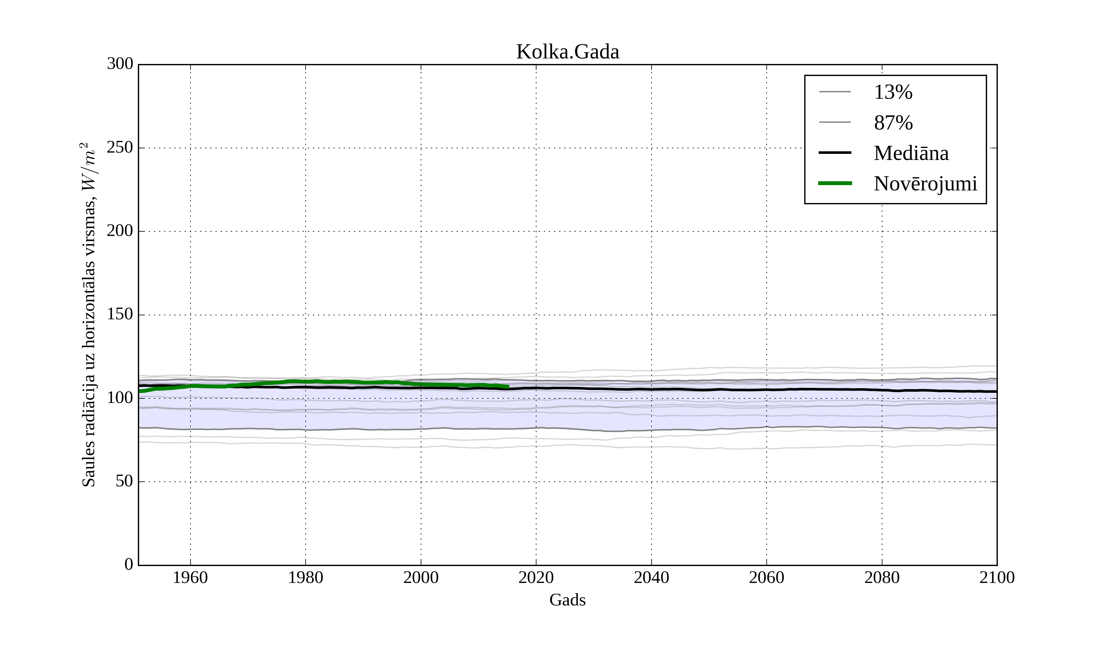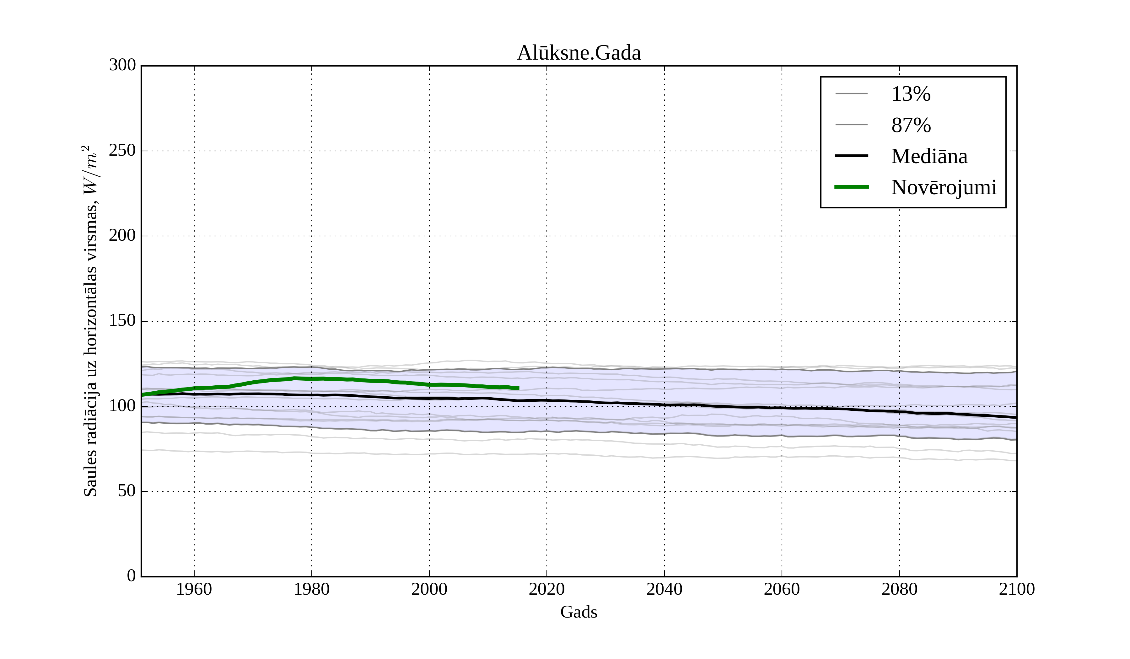 Figure 8. Climatological trend of yearly average solar irradiation on horizontal surface in Aluksne