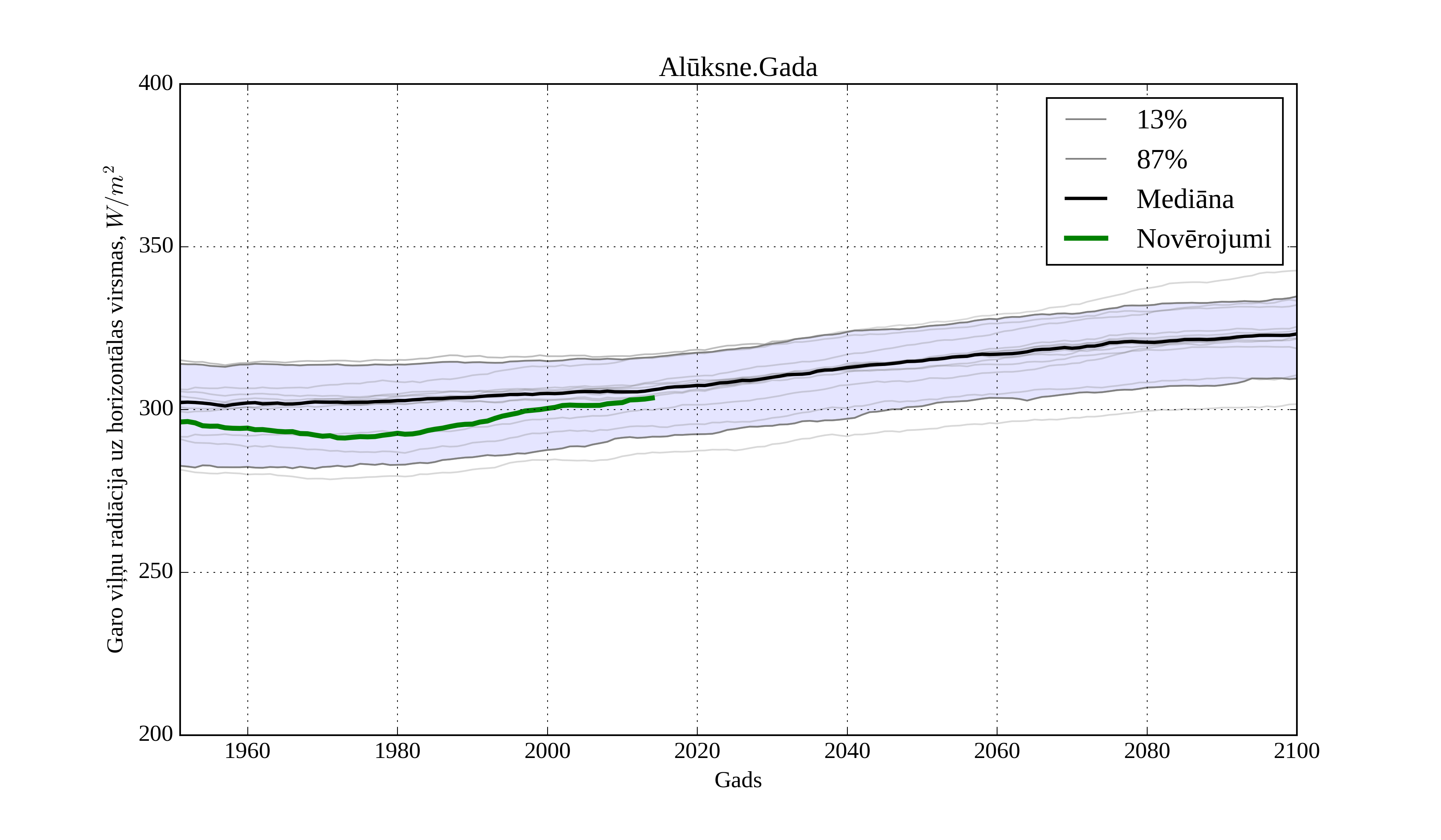 Figure 32. Climatological trend of yearly average LW irradiation on horizontal surface in Aluksne