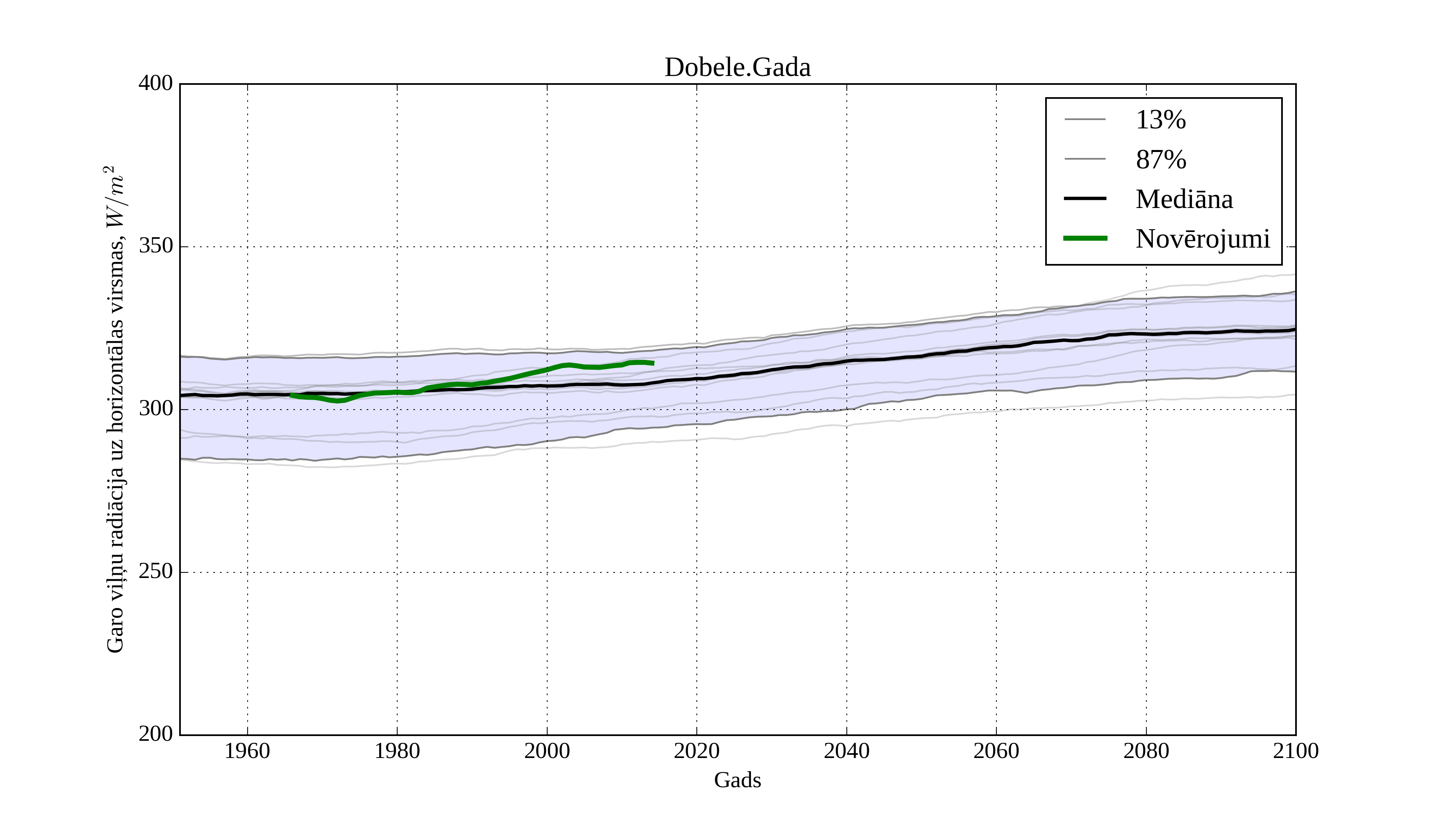 Figure 33. Climatological trend of yearly average LW irradiation on horizontal surface in Dobele