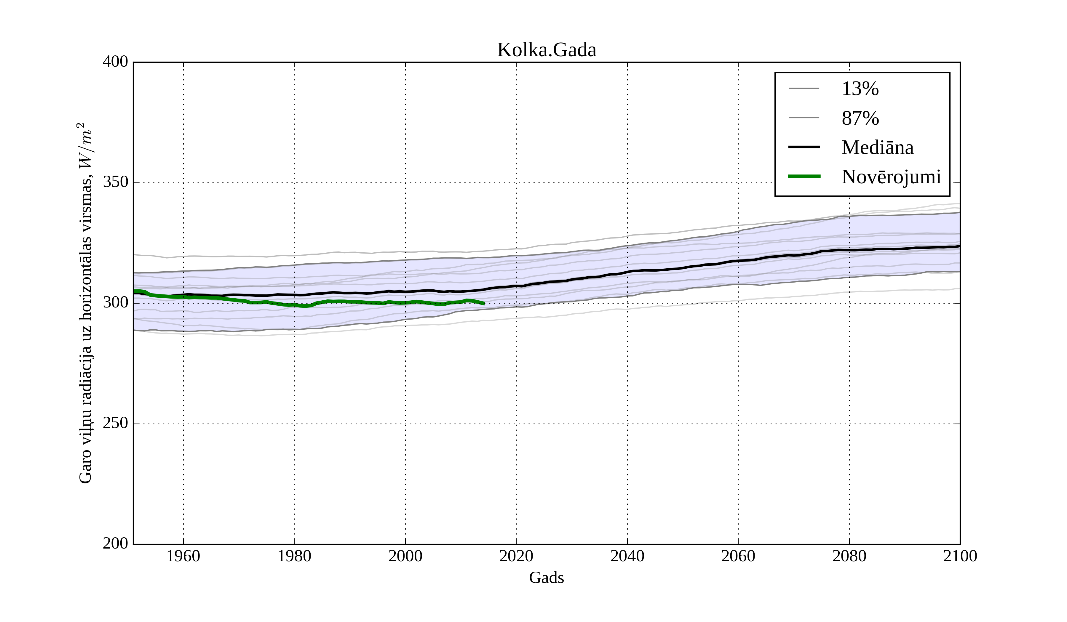 Figure 31. Climatological trend of yearly average LW irradiation on horizontal surface in Kolka